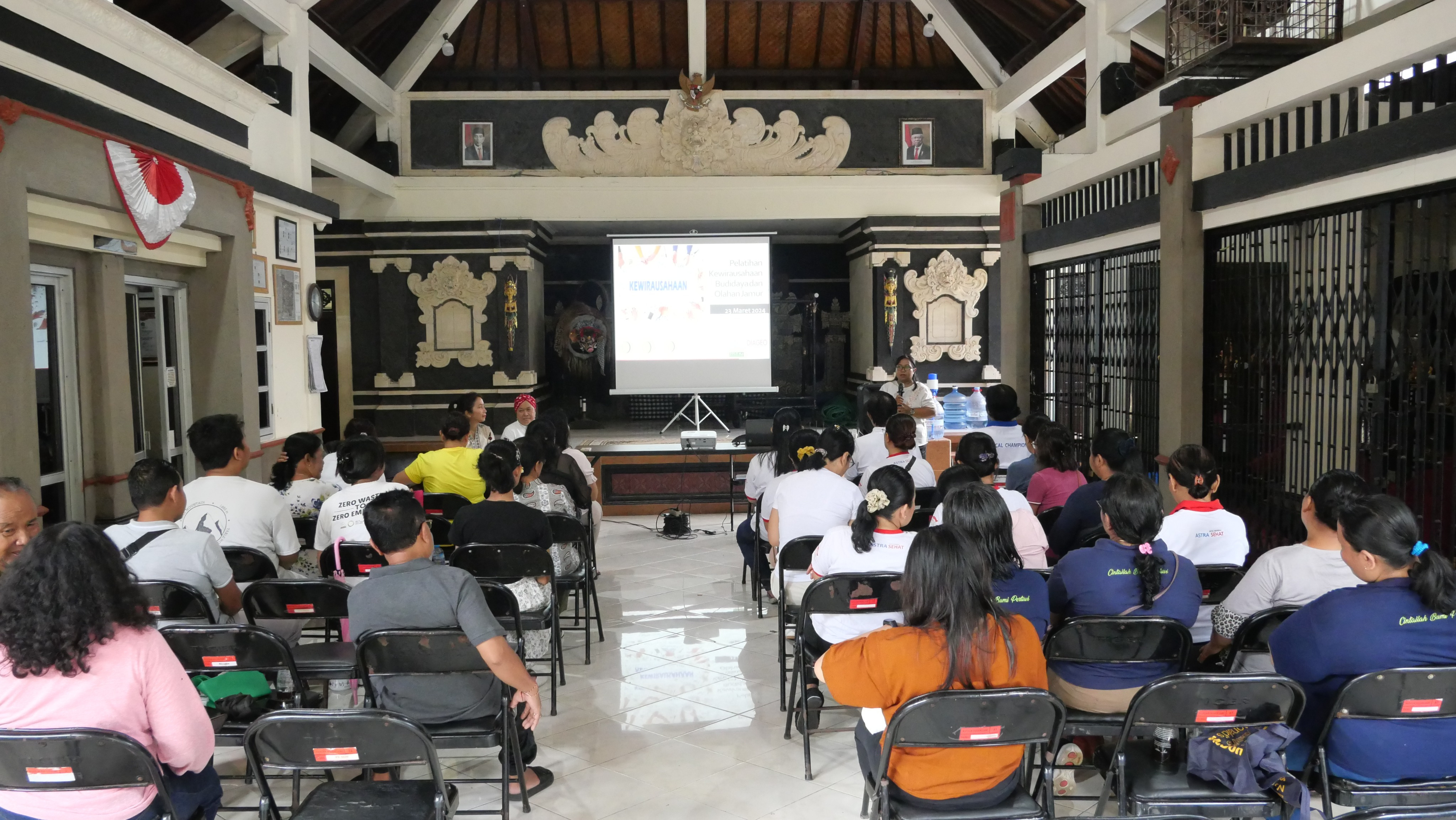 Ibu Catur Yudha Hariani selaku direktur PPLH Bali menyampaikan, “Kegiatan pelatihan kewirausahaan ini sebenarnya banyak tema di antaranya kompos, herbal, sabun eco enzym, tepung singkong, budidaya maggot, dan budidaya jamur. Target pelatihan ini untuk kelompok perempuan, anak muda, dan pegiat sampah sebanyak 600 orang di seluruh Bali. Harapannya setelah pelatihan muncul wirausahawan baru”.
