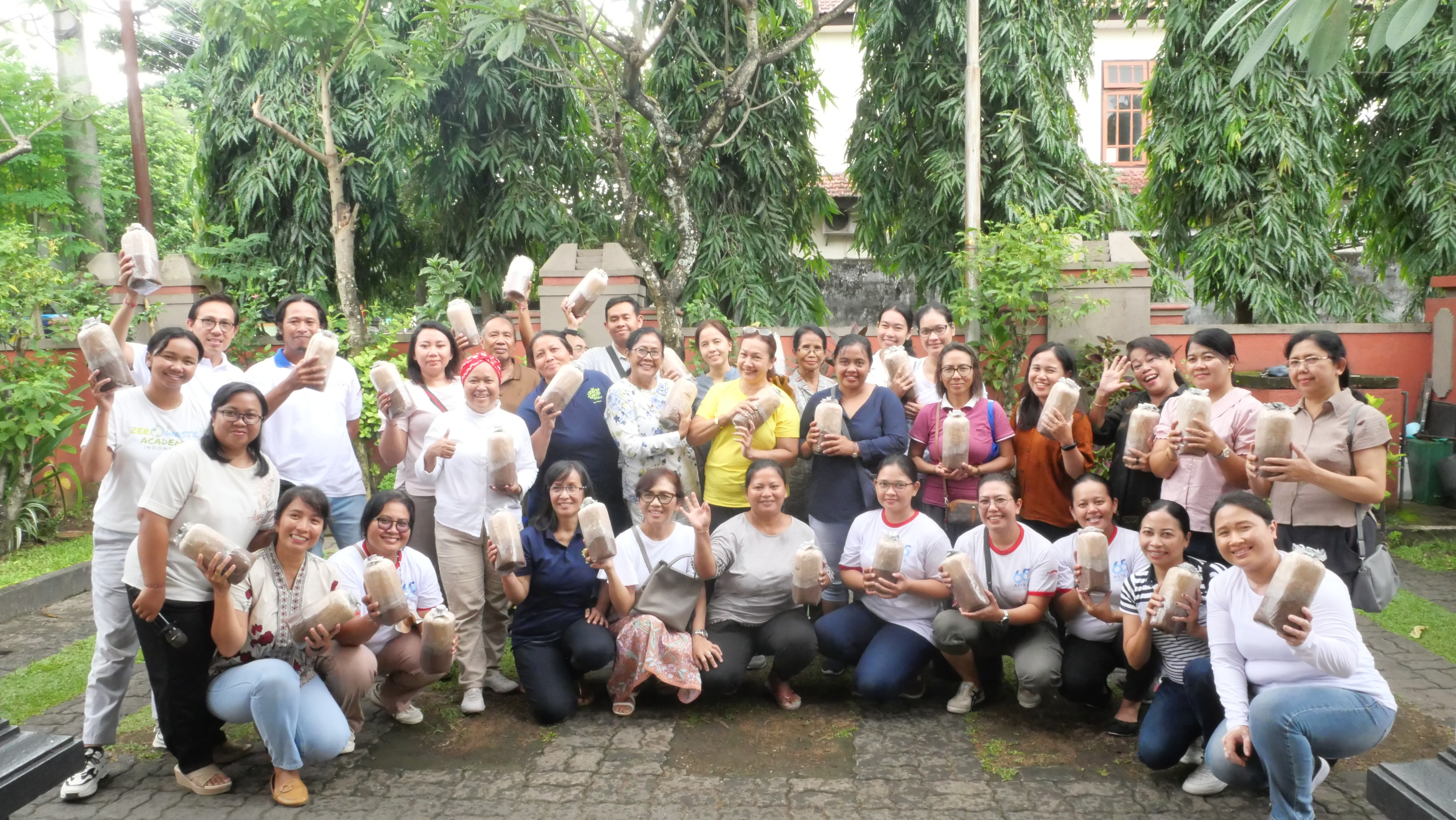 Denpasar - Pelatihan Kewirausahaan Budidaya, dan Olahan Jamur sukses digelar pada Sabtu (23/03) di Banjar Tegeh Sari, Gatot Subroto, Denpasar. Peserta 50 orang berasal dari kelompok PKK, Petugas Bank Sampah, Pengurus Balita dan Lansia, Muda-Mudi, Pengurus Yayasan Tegeh Sari. Pelatihan ini merupakan kelanjutan serangkaian pelatihan kewirausahaan hasil kolaborasi PPLH Bali dengan Diageo Indonesia. Sebelumnya sudah terselenggara pelatihan kewirausahaan mol dan kompos di Karangasem, Klungkung dan Gianyar, dan masih akan ada pelatihan kewirausahaan lainnya dengan topik yang berbeda.