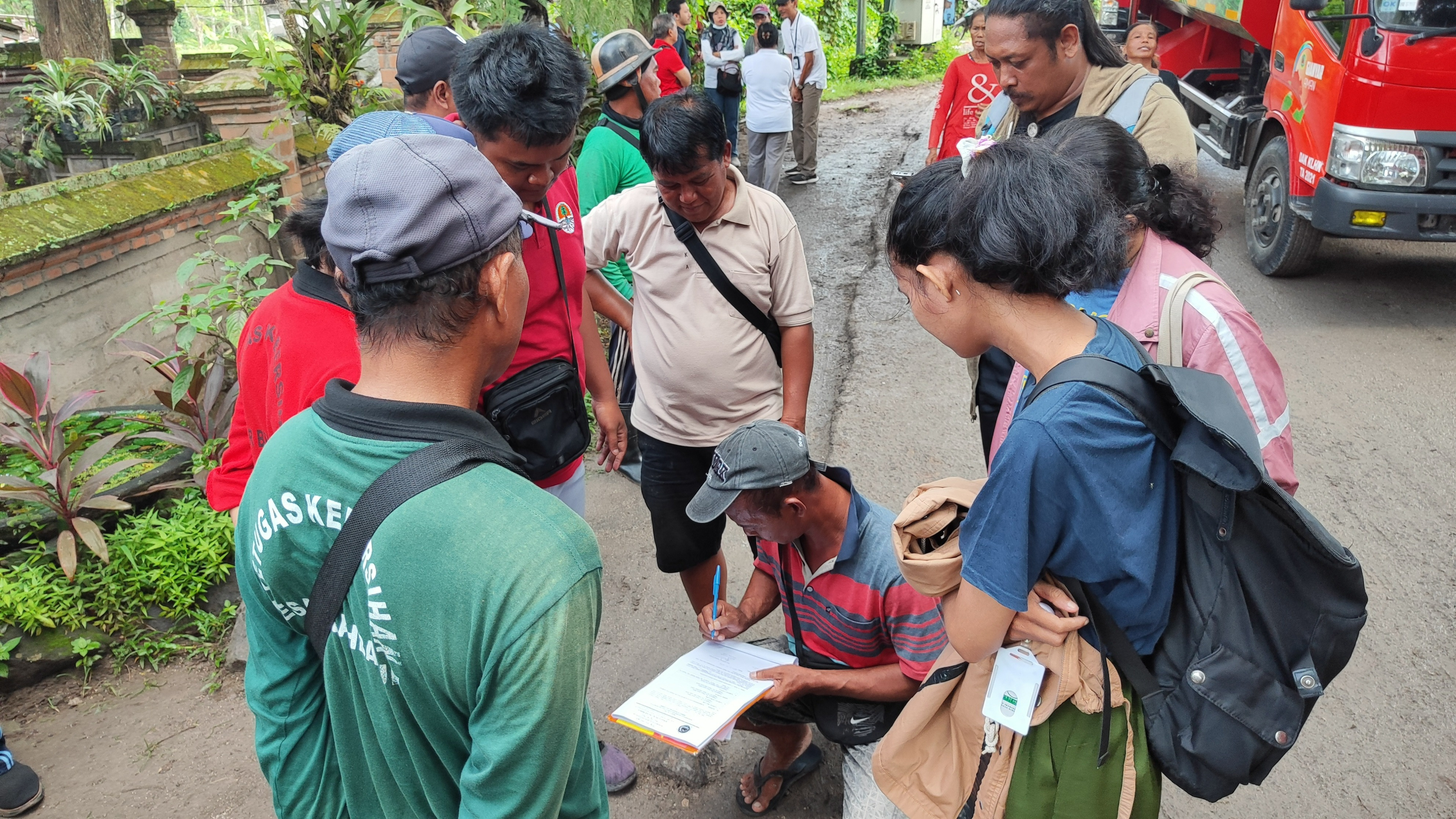 Pembuatan berita acara oleh pengawas UPTD TPA Temesi untuk petugas pengangkut sampah (1/5/2024)